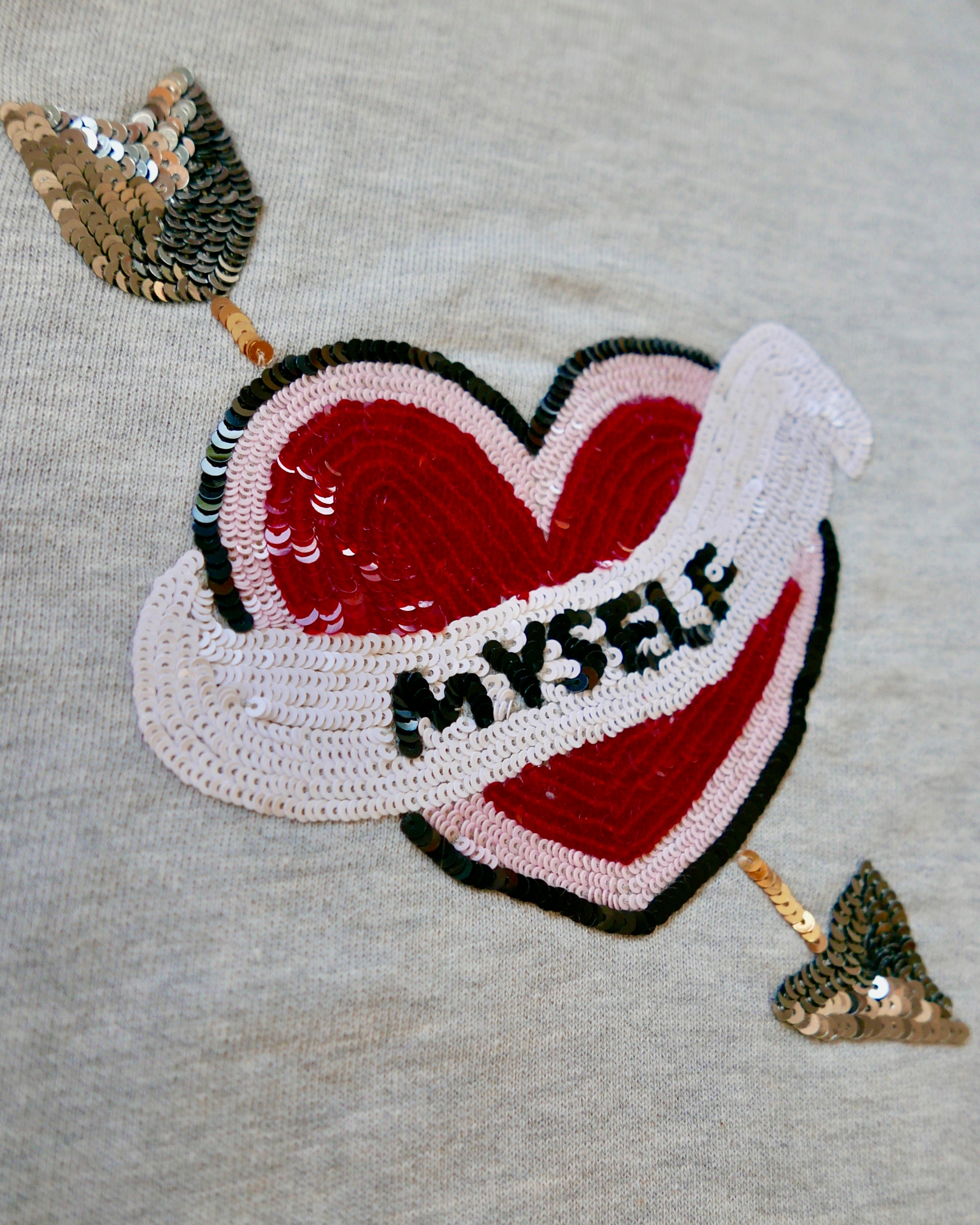 Wrap yourself in a cozy reminder to always believe, be, and love yourself. The SELF LOVE sweatshirt, hand-embellished with a loving heart, is the perfect daily dose of self-love. Embrace your unique self with this playful and comfy statement piece. You deserve it ❤️